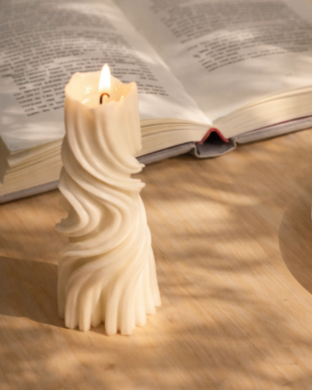 Deze kaars combineert een klassiek ontwerp met een speelse twist. Met zijn gedraaide vorm en subtiele ribbels is deze kaars een stijlvol accent voor elk interieur.